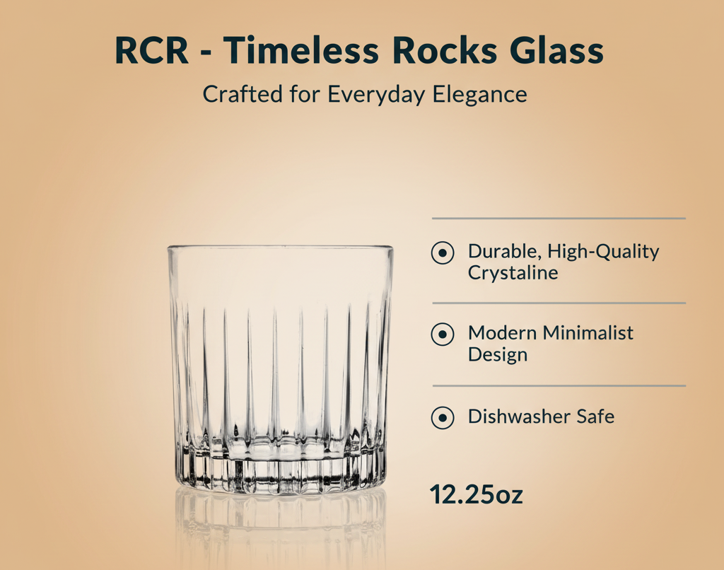 The Timeless Rocks Glass, with a generous 12.25oz capacity, embodies sophistication and elegance in any refined setting. Designed for those who appreciate the finer things in life, this cocktail and liquor glass effortlessly elevates the art of drinking. • Each exquisite piece exudes timeless elegance, subtly enhancing your drinking experience with its artful design. • Specifically constructed to complement any fine liquor or cocktail, it embodies both form and functionality. • Perfectly balanced, it fits comfortably in the hand, making every sip a luxurious indulgence. • Its refined silhouette and premium finish make it an indispensable addition to any discerning connoisseur's glassware collection.